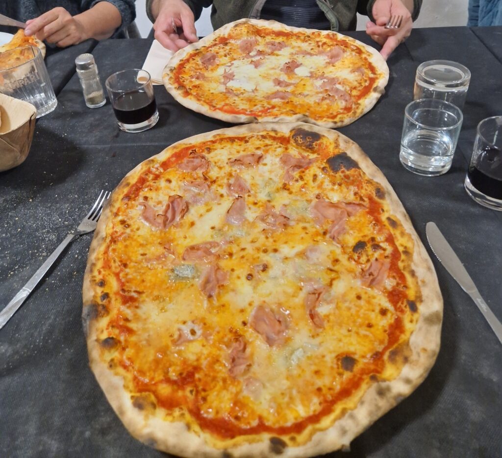 Der Pizzaabend in Adele’s Pizzeria wird legendär: Mega-Pizzas, eine lautstarke Geburtstagsgesellschaft nebenan singt italienische Karaoke-Canzoni und beste Stimmung in unseren Reihen.